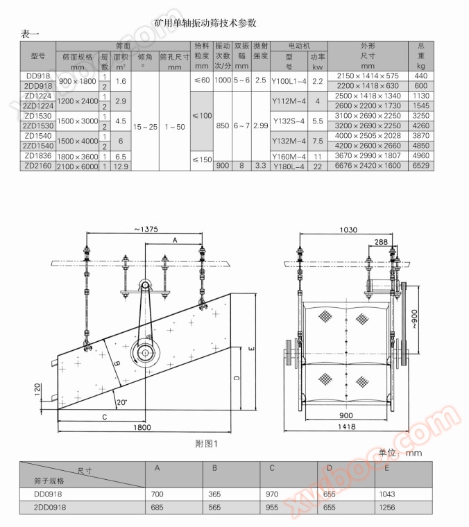 Dd, zd tamis vibrant Uniaxial pour l'exploitation minière